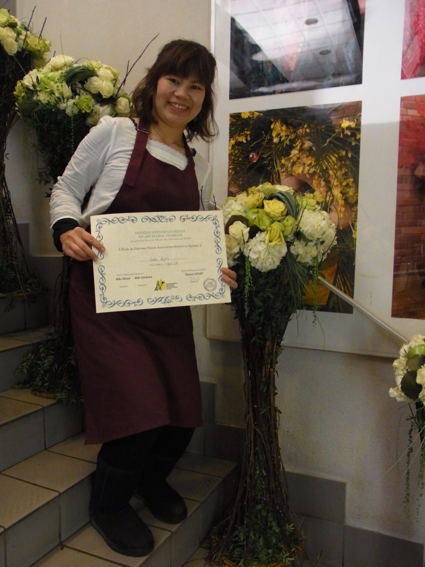 短期大学を卒業後、看護師として勤務している際に、花の教室に通ったことで仕事での悩みから解放され、花の魅力に気が付き、その後フラワー教師資格1級を取得し、2度に渡りパリのエコールに渡仏。
